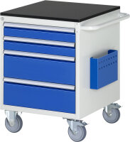 Die klassischen RAU Montagewagen sind mit mehreren Schubladen, Ablagefächern und teils mit integrierten Schubladensicherungen ausgestattet. Sie bieten Platz für verschiedenste Werkzeuge und sind besonders in Autowerkstätten, Schlossereien oder bei Serviceteams im Einsatz.