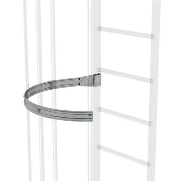 MUNK Rückenschutzbügel mit seitlichem Ausstieg, verzinkt, inklusive Montagesatz (Artikelnummer 63237). Bietet effektiven Schutz vor Stürzen, leicht montierbar und an verschiedene Steigleitermodelle anpassbar. Ideal für erhöhte Sicherheit beim Seitenausstieg.