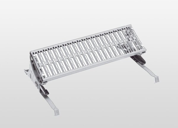 MUNK Standrost aus verzinktem Stahl, Modell 11175. Maße 800 x 250 mm, inklusive Unterbau. Einfache Selbstmontage. Entspricht der Bauproduktenverordnung BauPVO 305/2011 (EU) und DIN EN 516. Ideal für robuste und dauerhafte Anwendungen.