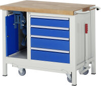 RAU Werkbank mit Fahrgestell 8183-6, B1250xT700xH880mm, 3xSchublade-VA, 1xSSK, 15-8183A6-127B4F.11