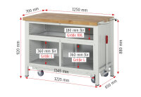 RAU Werkbank mit Fahrgestell 8921, B1250xT700xH920mm, 5xSchublade-TA, 05-8921A2-127B4F.11
