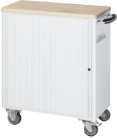 RAU Werkzeugwagen 7260 mit robustem Buche-Top (25 mm), Maße: B725xT400xH860mm. Ausgestattet mit 5 Schubladen, Rollensatz inkl. Feststeller und pulverbeschichteter Oberfläche. Maximale Belastbarkeit von 320 kg. Wird montiert geliefert und hat eine 5-jährige Qualitätsgarantie. Hergestellt in Deutschland.