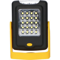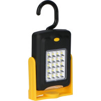 Kompakte LED Handlampe von SHADA mit 1,4W und 120lm, bietet kühles weißes Licht (7000K). Ausgestattet mit Front- und Zusatzlicht, Magnetfuß und drehbarem Haken. Ideal für Werkstatt und Outdoor. Benötigt 3 AAA-Batterien. Nicht dimmbar, IP20.